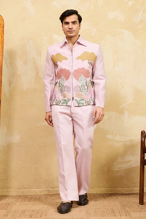 Pink Unique Color Embroidered Koti Kurta Pajama for Mens