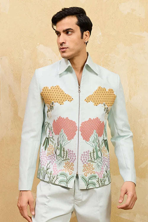 Regal Green Bomber Jacket With Thread Work And Pant For Mens