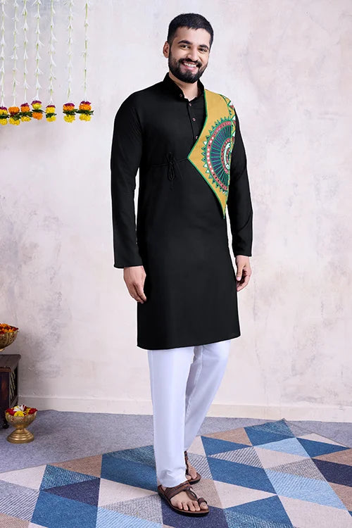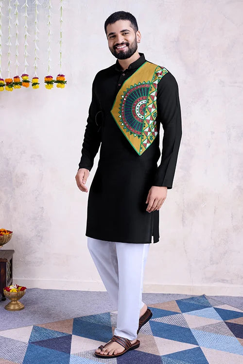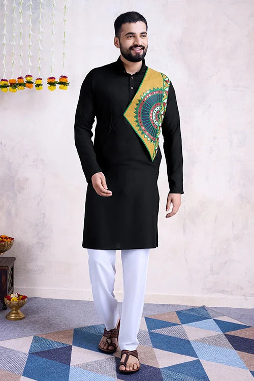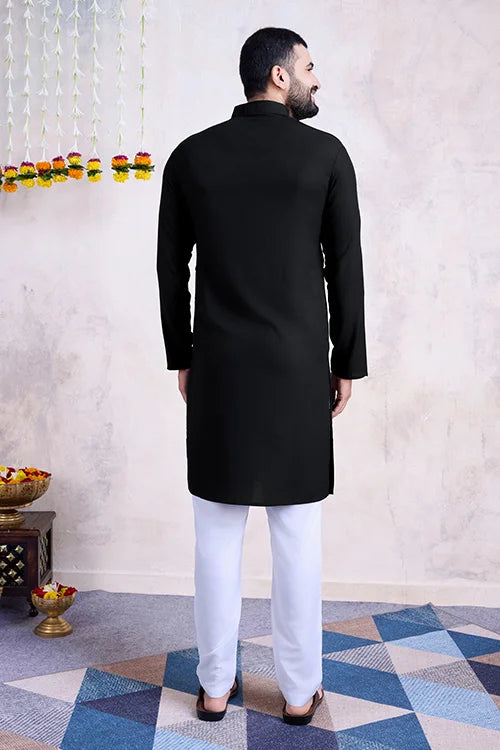 - Elevate Your Festive Look With Black Ready To Wear Traditional Kurta For Men. Designed To Add Charm And Grace To Your Wardrobe With A Touch Of Elegance.