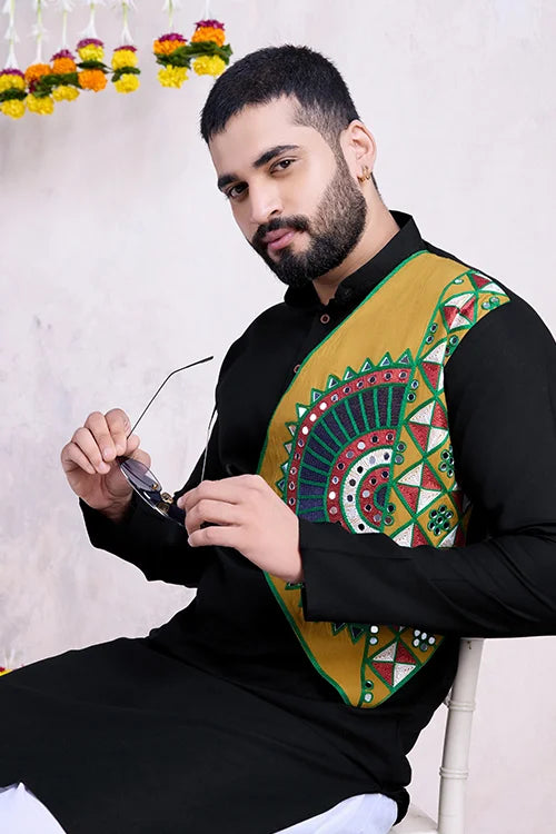 Black Color Navratri Special Real Mirror Work Men's Kurta.