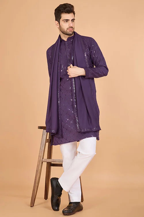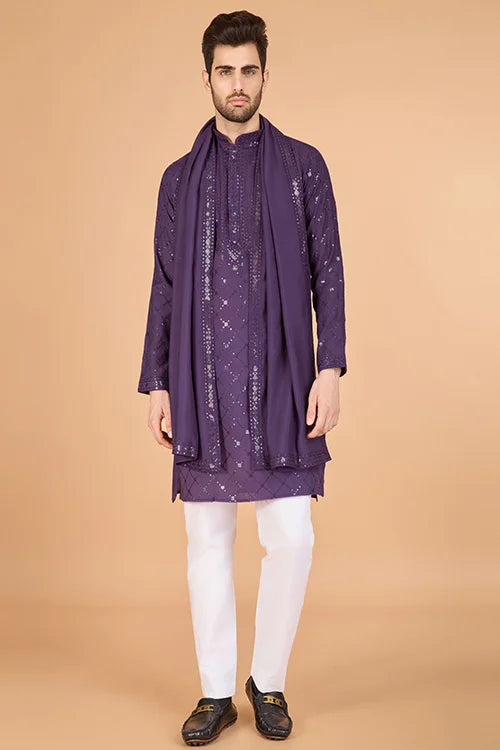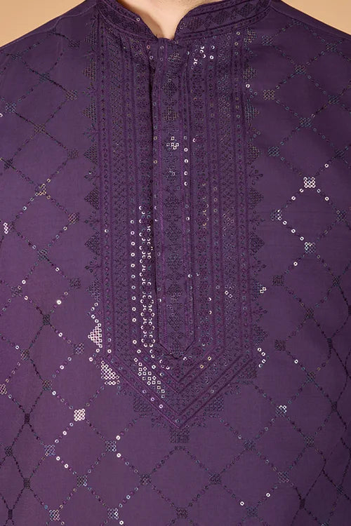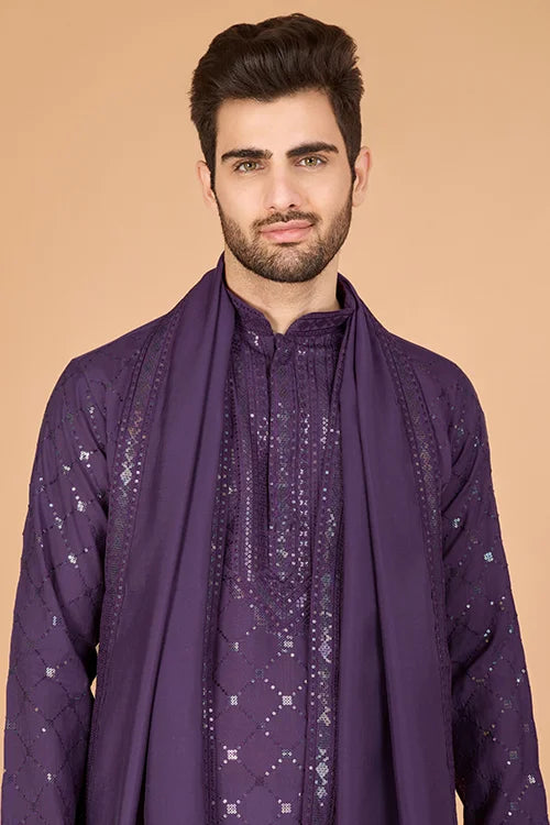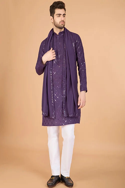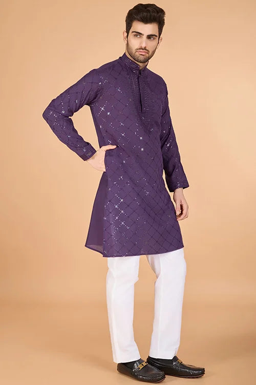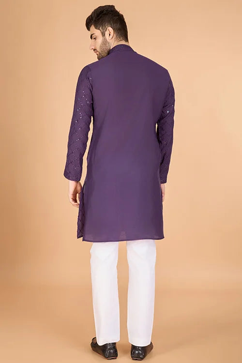 This Kurta Is Designed For Men Who Appreciate Classic Ethnic Wear With A Modern Twist. Whether You're Attending A Wedding, Celebrating Navratri, Diwali, Or Dressing Up For A Traditional Event, This Embroidered Purple Kurta Makes A Stylish Statement. The Rich Purple Color Symbolizes Royalty, Making You Stand Out Effortlessly.