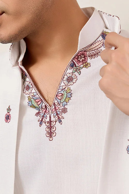 The White Koti Kurta Pant Set Presents A Perfect Blend Of Elegance, Tradition, And Premium Craftsmanship. This White Koti Kurta Pant Set Suits Mens Who Value Refined Ethnic Fashion For Weddings, Festive Events, And Traditional Celebrations. The Clean White Tone Creates A Rich And Royal Presence That Fits Every Cultural Occasion.