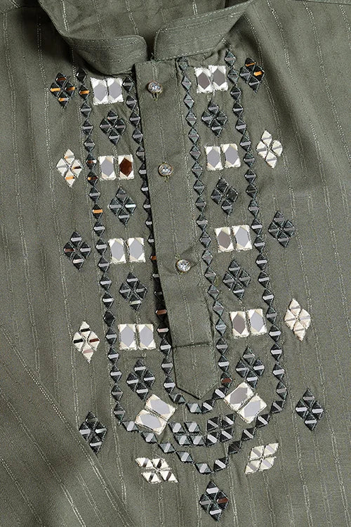 Step Into Sophistication With Our Olive Green Mirror Work Kurta Paired With A Matching Dupatta – Designed To Make A Royal Statement At Any Special Occasion. This Kurta Set Is Crafted From Premium Pure Viscose Fabric That Drapes Effortlessly, Giving You A Regal Look Without Compromising On Comfort.