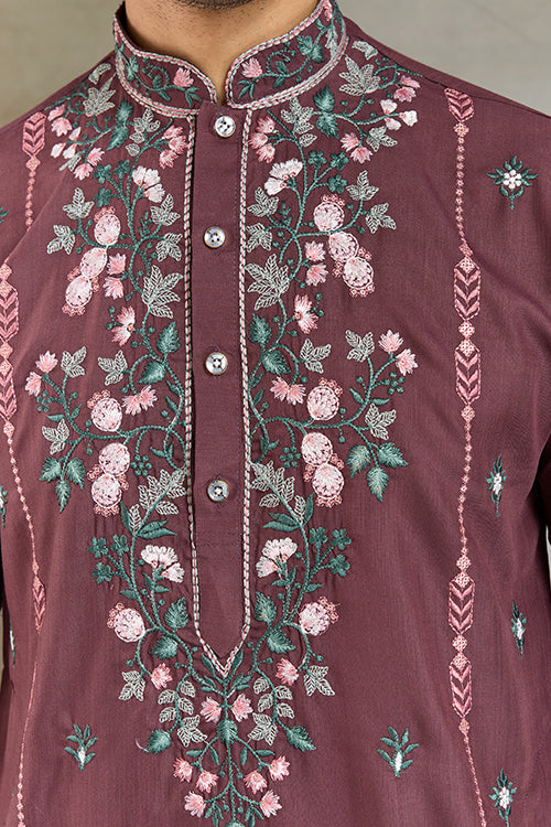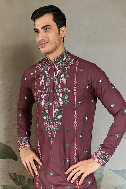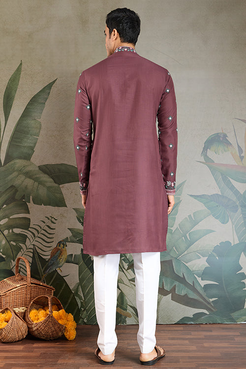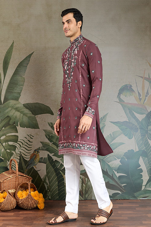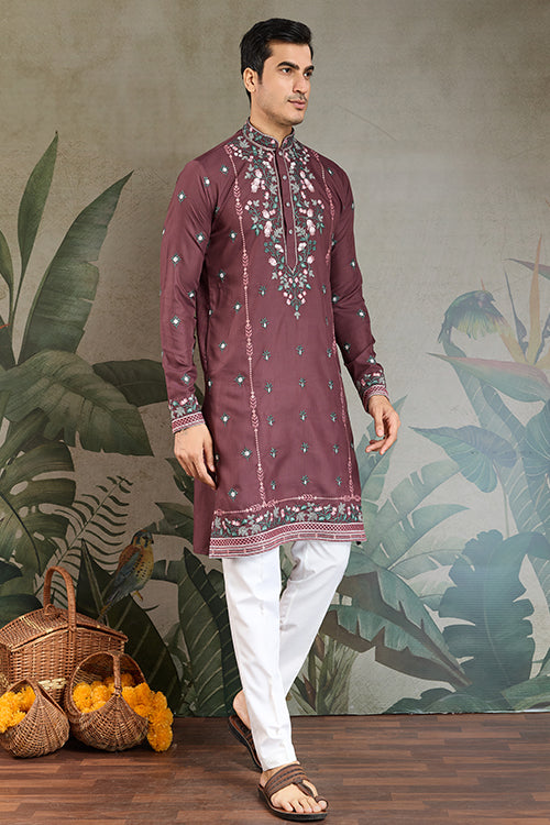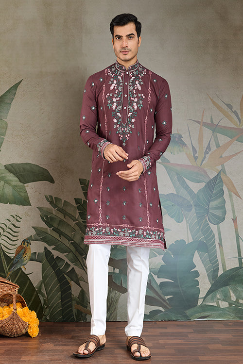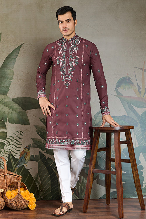 Add A Serene, Sophisticated Touch To Your Ethnic Wardrobe With Our Shop Best Pastel Chocolate Kurta For Wedding & Festive Functions — Designed For Men Who Seek Elegance With Comfort. Crafted From High-Quality Viscose Silk, This Kurta Features Intricate Thread With Sequin Embroidered Work That Enhances Its Regal Appeal.