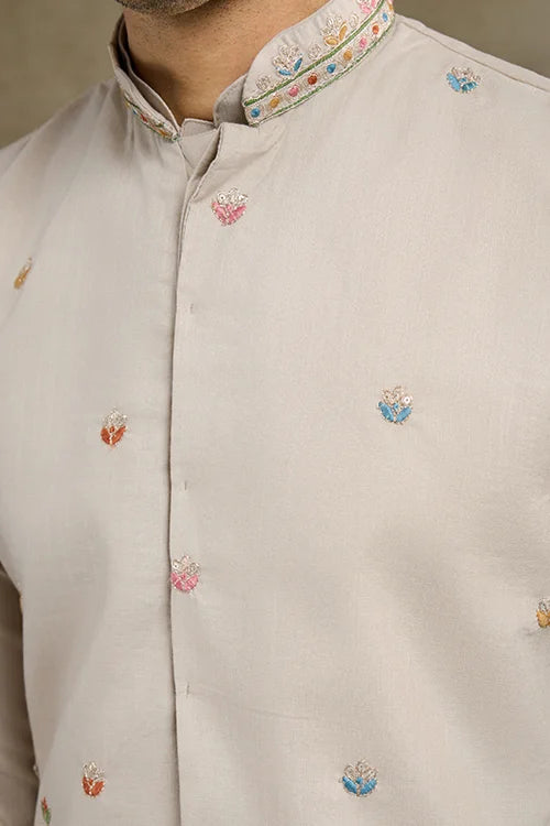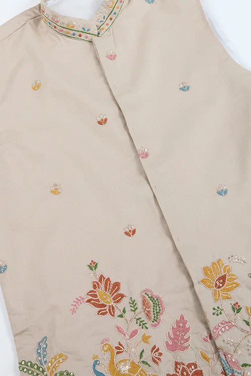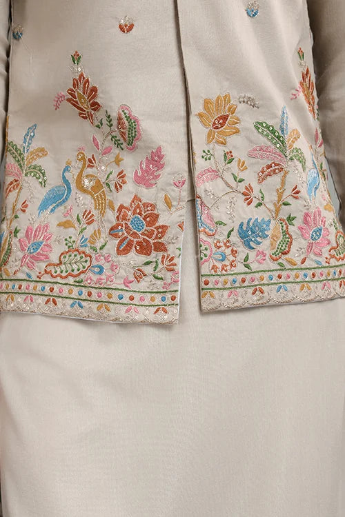 Looking For A Stylish And Sophisticated Ethnic Outfit? Our Stylish Ivery Men's Kurta Koti Set Is The Perfect Blend Of Tradition And Contemporary Fashion. With Exquisite Thread And Sequin Embroidered Work, This Ensemble Is An Ideal Choice For Weddings, Festivals, And Special Occasions