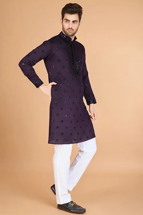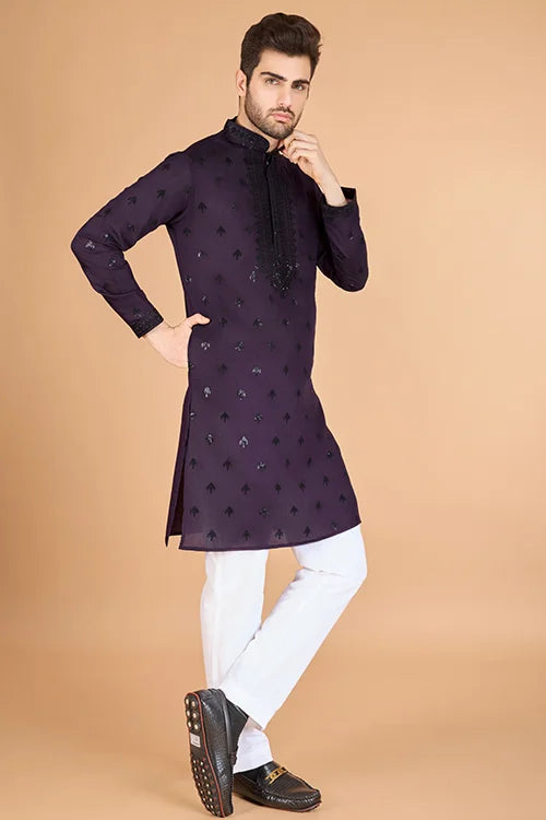 Stylish Purple Kurta For Men, A Perfect Blend Of Traditional Elegance And Modern Design.