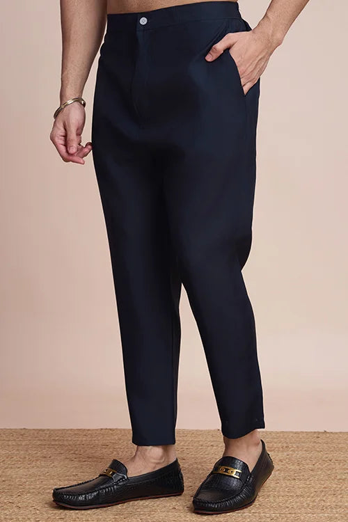 The Rich Navy Shade Symbolizes Grandeur And Sophistication. It Effortlessly Elevates Your Festive Wardrobe. This Ensemble Includes A Silk Kurta, But Does Not Come With A Bottom. Pair It With Your Choice Of Traditional Or Contemporary Bottoms For A Personalized Look.