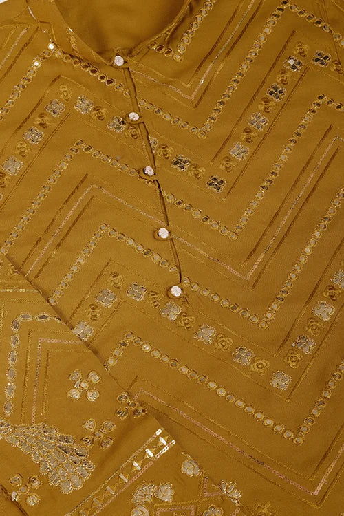 The Rich Yellow Shade Symbolizes Grandeur And Sophistication. It Effortlessly Elevates Your Festive Wardrobe. This Ensemble Includes A Silk Kurta, But Does Not Come With A Bottom. Pair It With Your Choice Of Traditional Or Contemporary Bottoms For A Personalized Look.