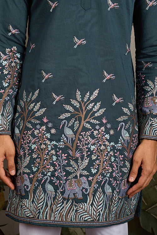 Make Your Wedding Celebrations More Elegant With This Green Embroidered Kurta For Men, Specially Designed To Give You A Regal And Festive Appearance.